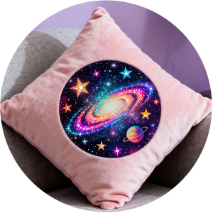 Estampas decorativas em almofadas, têxteis para o lar e lembranças.